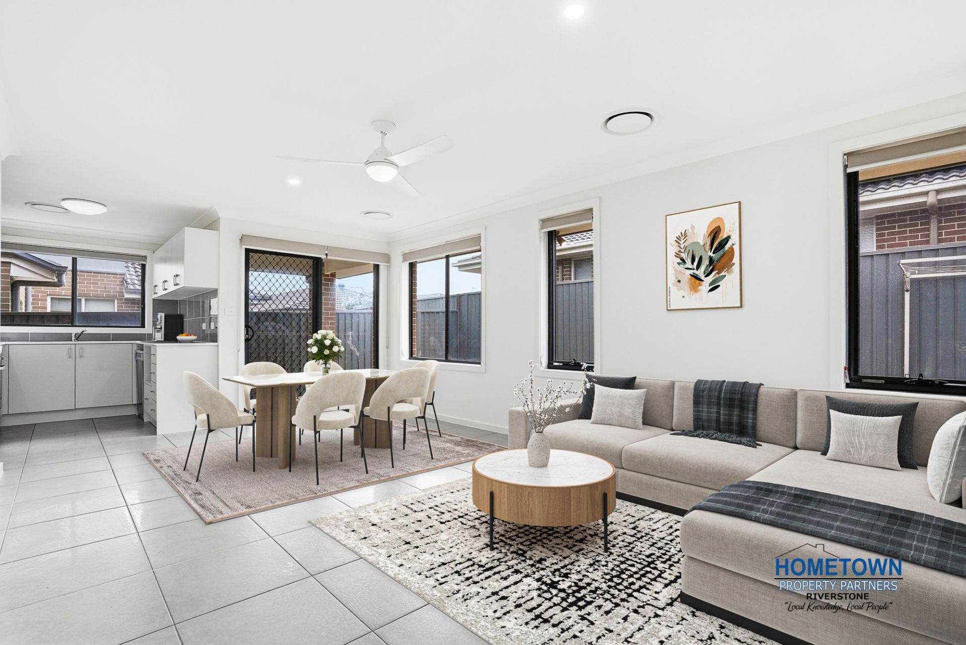 - Combined living and dining space