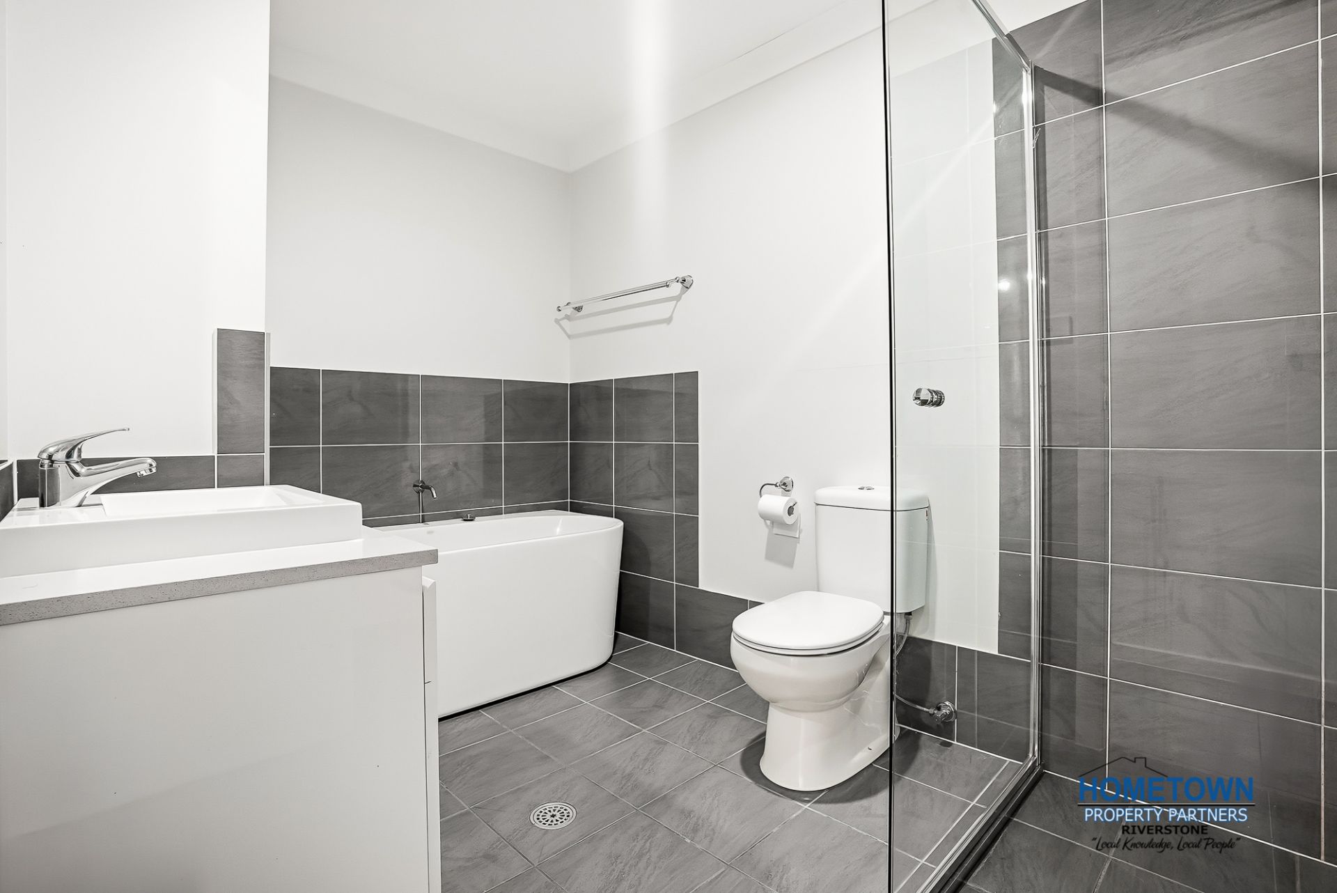 - Main bathroom with separate bath and shower