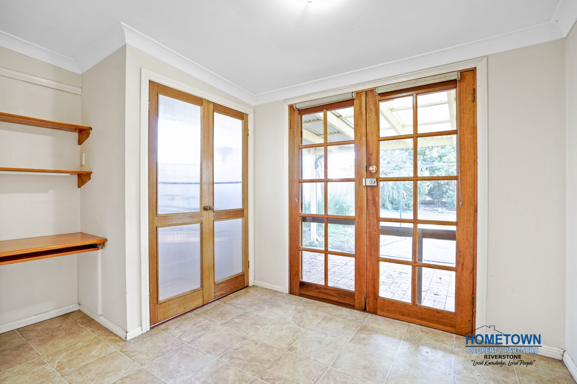 * French doors opening up to the backyard